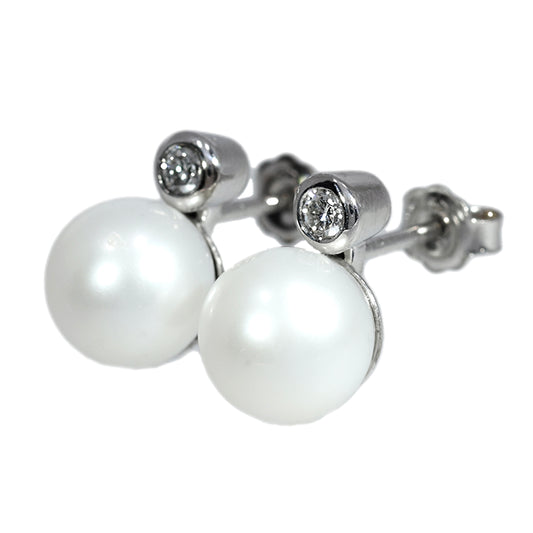 Aros Perlas Akoya y Diamantes - Oro Blanco 18kt