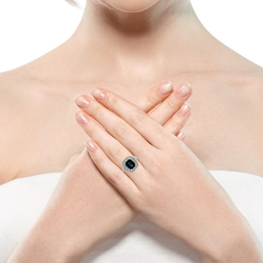 Anillo Zafiro y Diamantes - Oro Blanco 18kt
