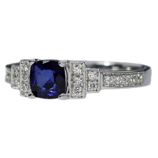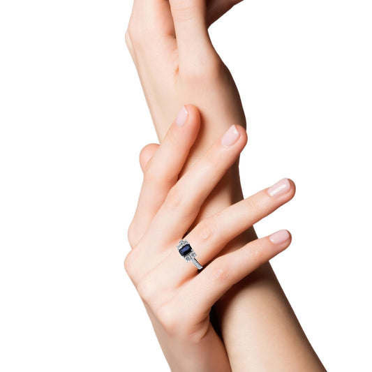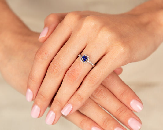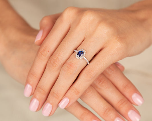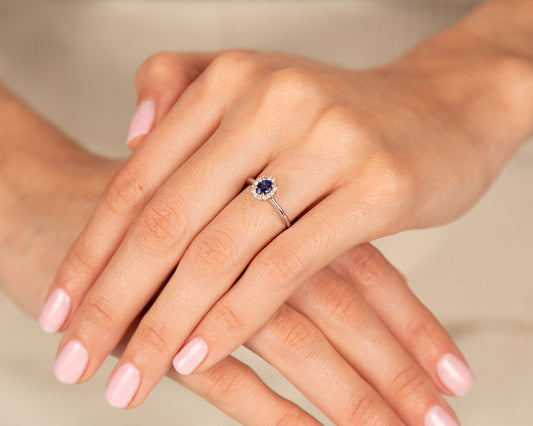 Anillo Zafiro y Diamantes - Oro Blanco 18ktPrecio habitual $1.320.000 CLPPrecio habitualPrecio unitario por-