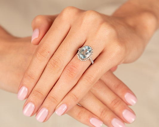 Anillo Aguamarina y Diamantes - Oro Blanco 18ktPrecio habitual $2.520.000 CLPPrecio habitualPrecio unitario por-