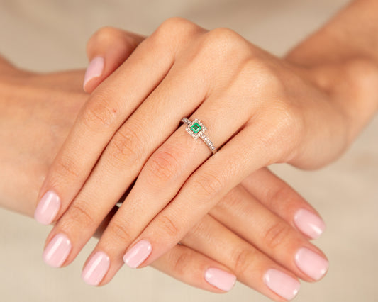 Anillo Esmeralda y Diamantes - Oro Blanco 18ktPrecio habitual $1.080.000 CLPPrecio habitualPrecio unitario por-