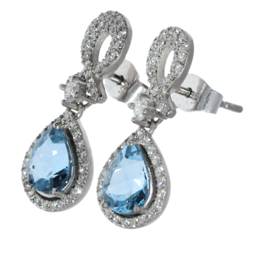 Aros Aguamarina y Diamantes - Oro Blanco 18kt