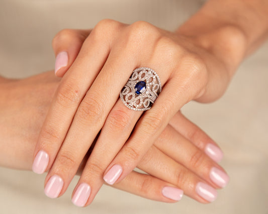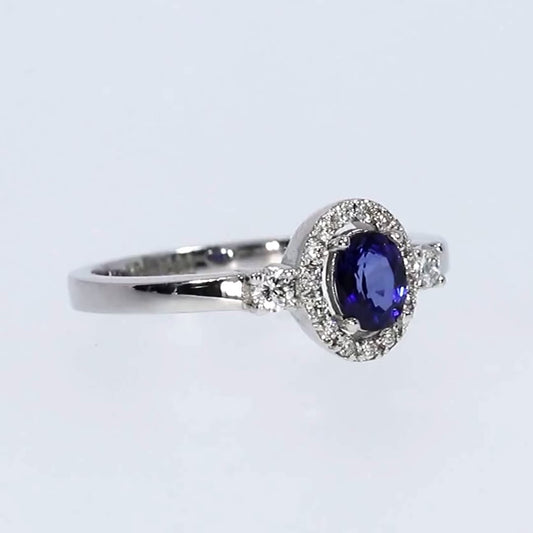 Anillo Zafiro y Diamantes - Oro Blanco 18kt