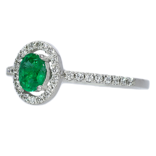 Anillo Esmeralda y Diamantes - Oro Blanco 18kt