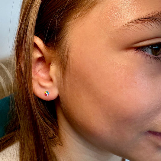 Aros Arcoíris Esmaltado - Oro Amarillo 14kt