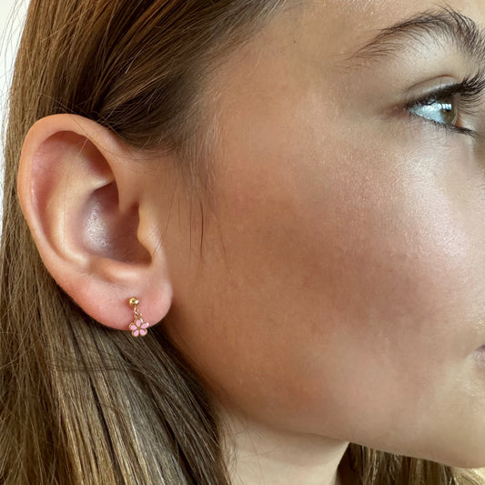 Aros Flor Esmaltado - Oro Amarillo 14kt