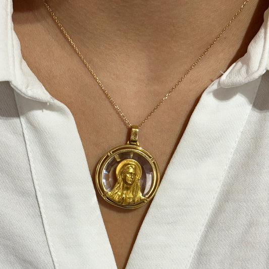 Medalla Virgen María - Cristal y Oro Amarillo 18kt
