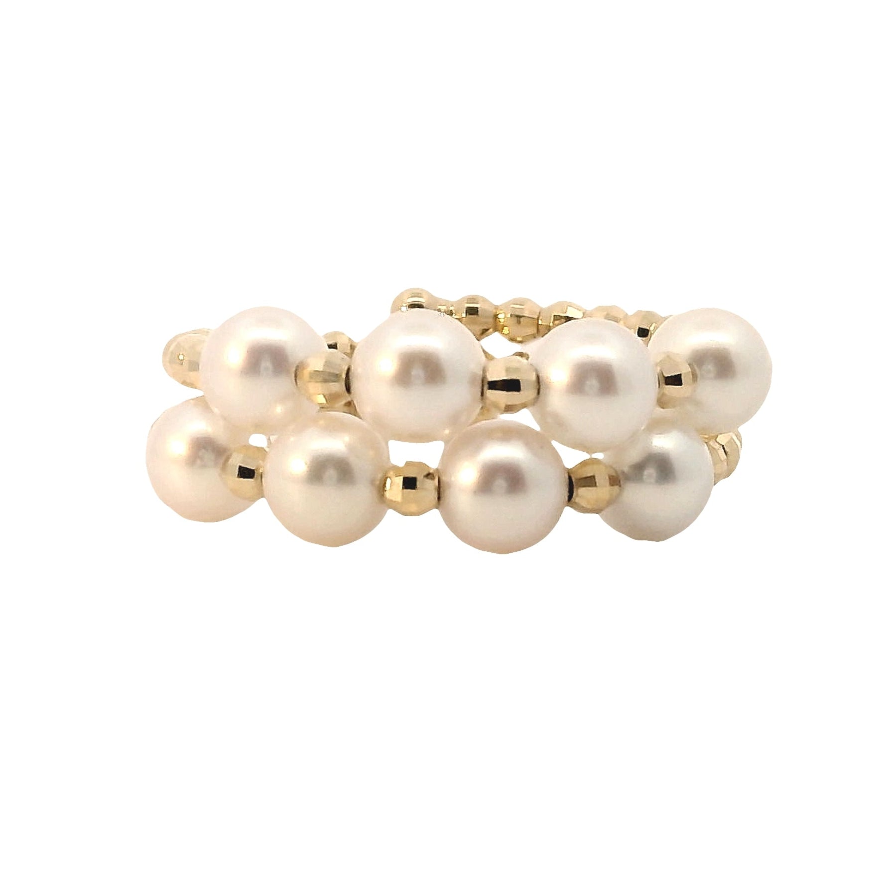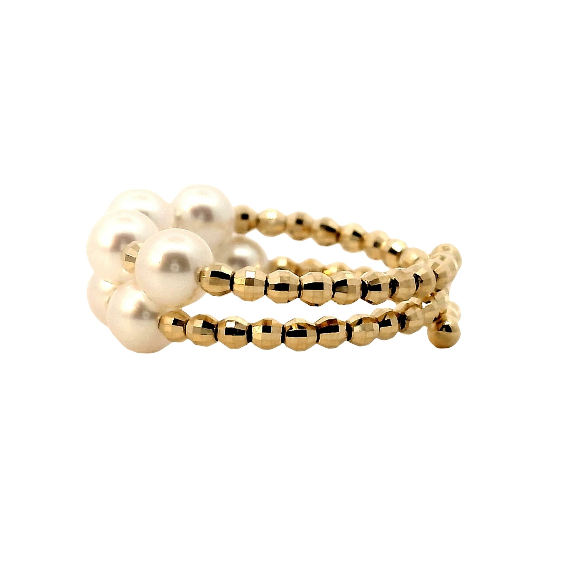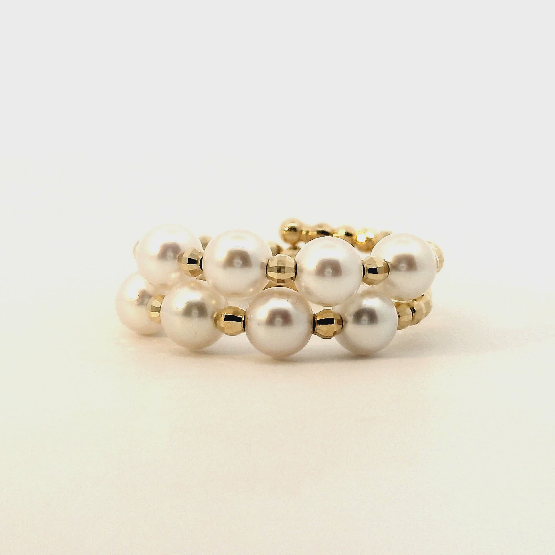 Anillo abierto ajustable, con 8 perlas Akoya, y con bolitas de oro amarillo 18kt.