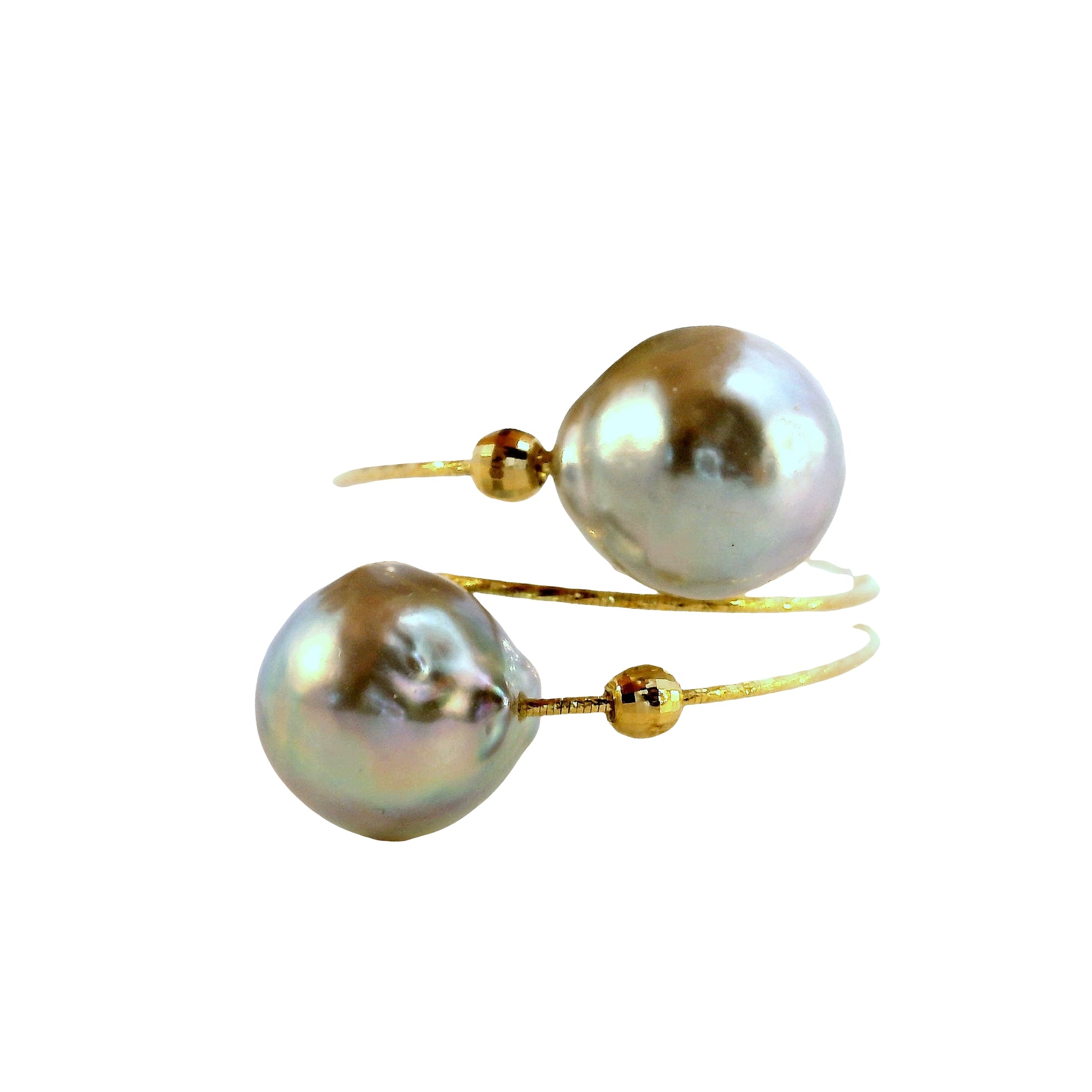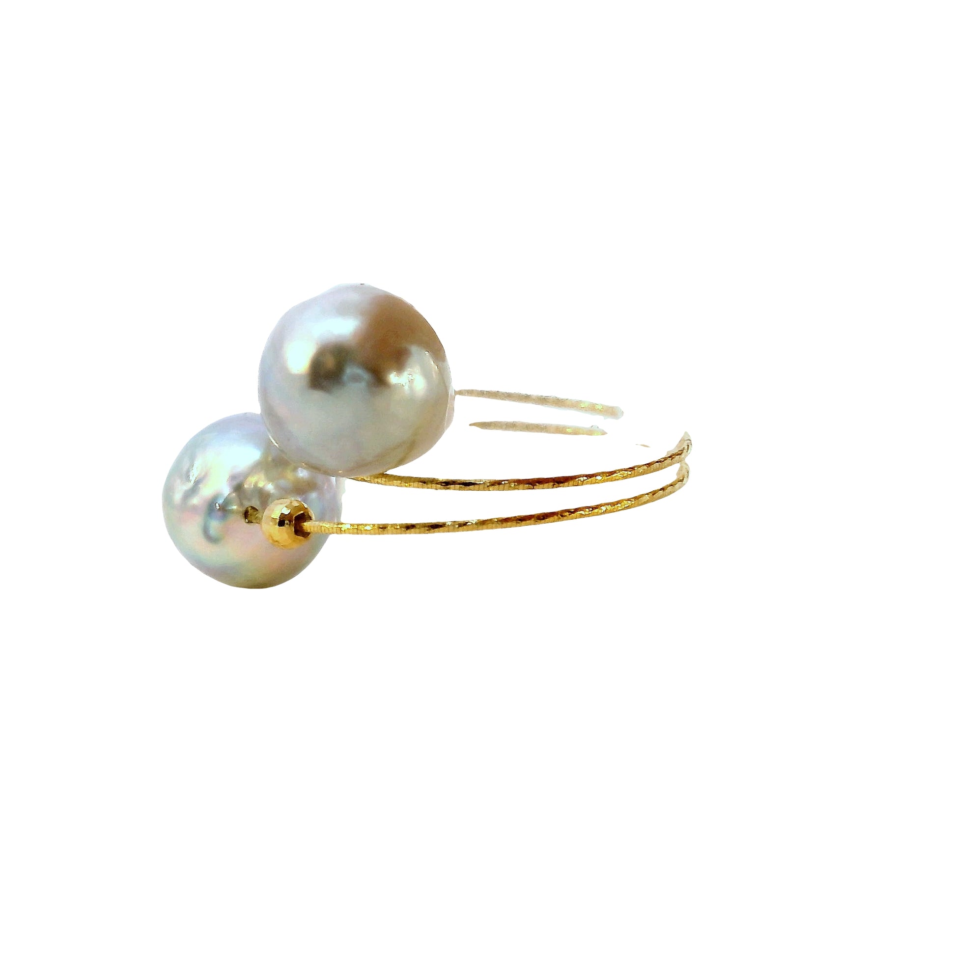 Anillo ajustable y abierto, con 2 perlas Akoya grises de 8.5 mm cada una, en oro amarillo 18kt.