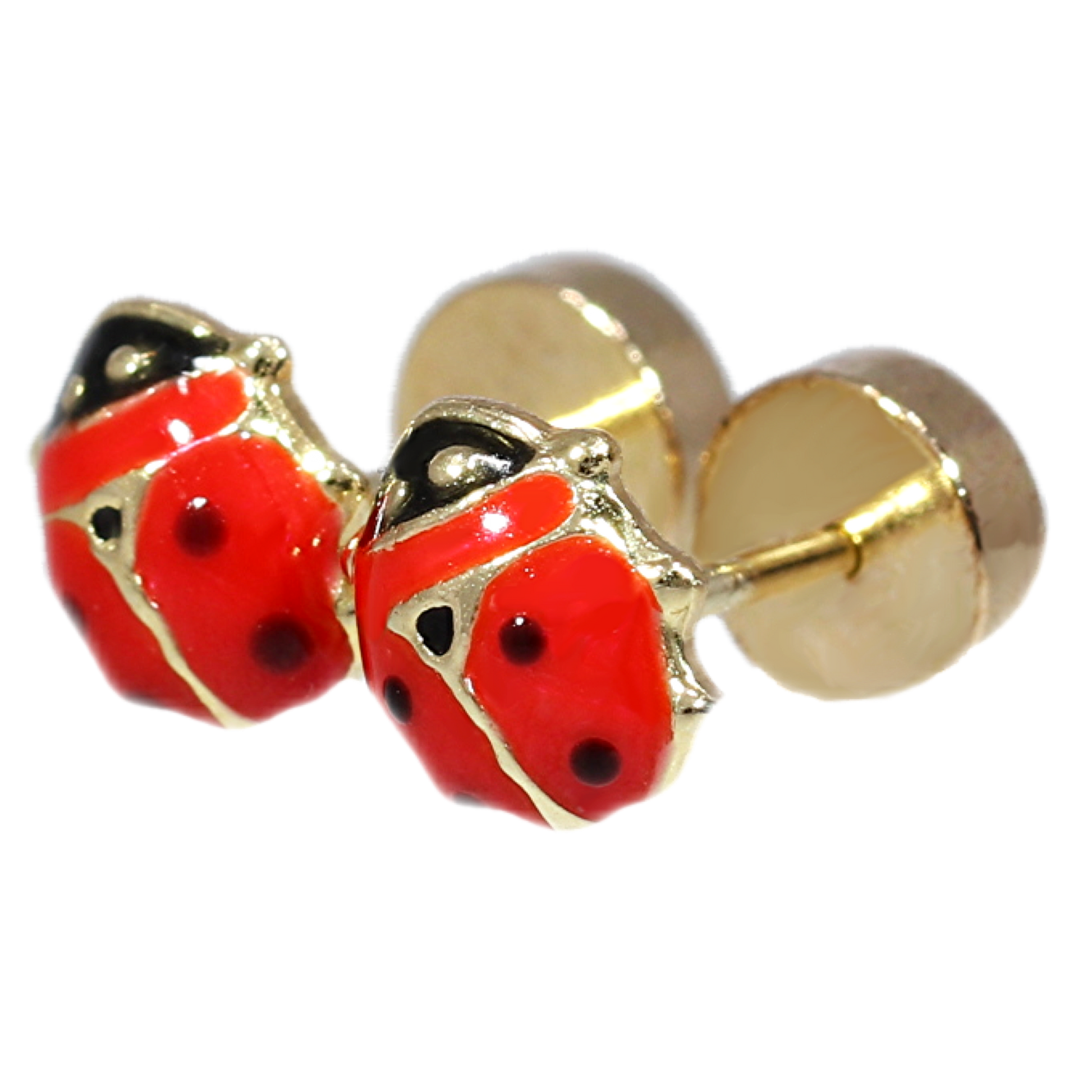Aros abridores diseño Chinita esmaltado, con tuerca tambor, en 0.73 gramos oro amarillo 18kt.