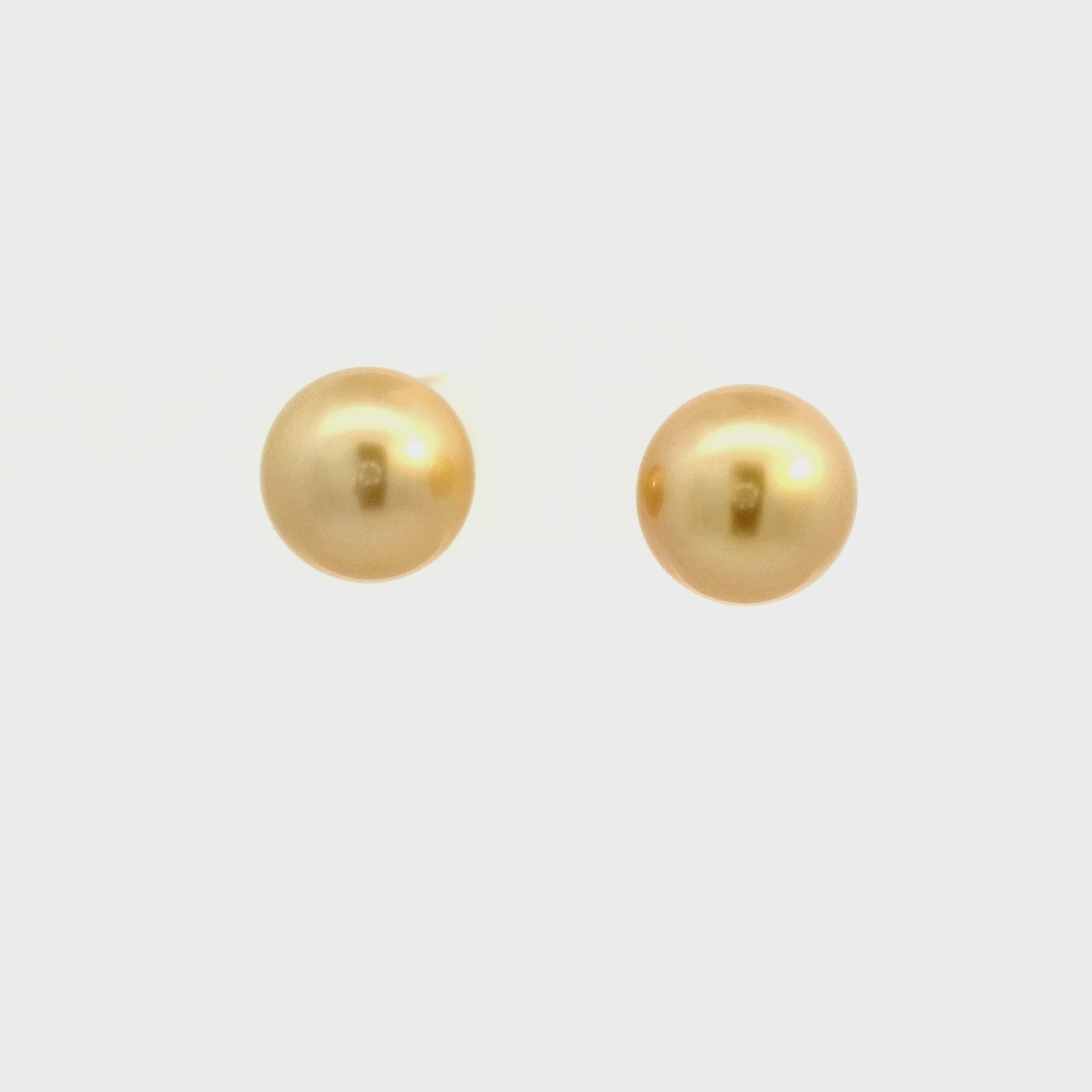 Aros con perlas Akoya amarillas, de 9.5 mm cada una.