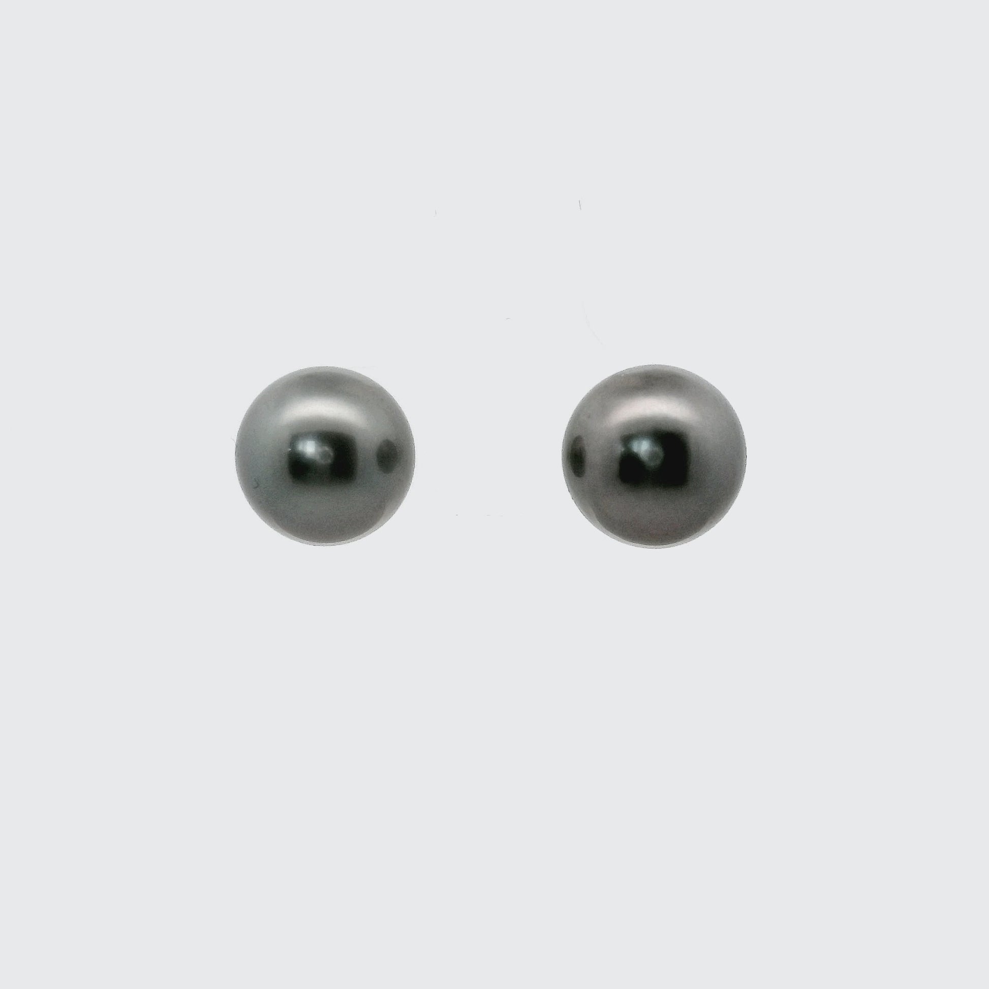 Aros con perlas grises Akoya de 9.2 mm, en oro blanco 18kt.
