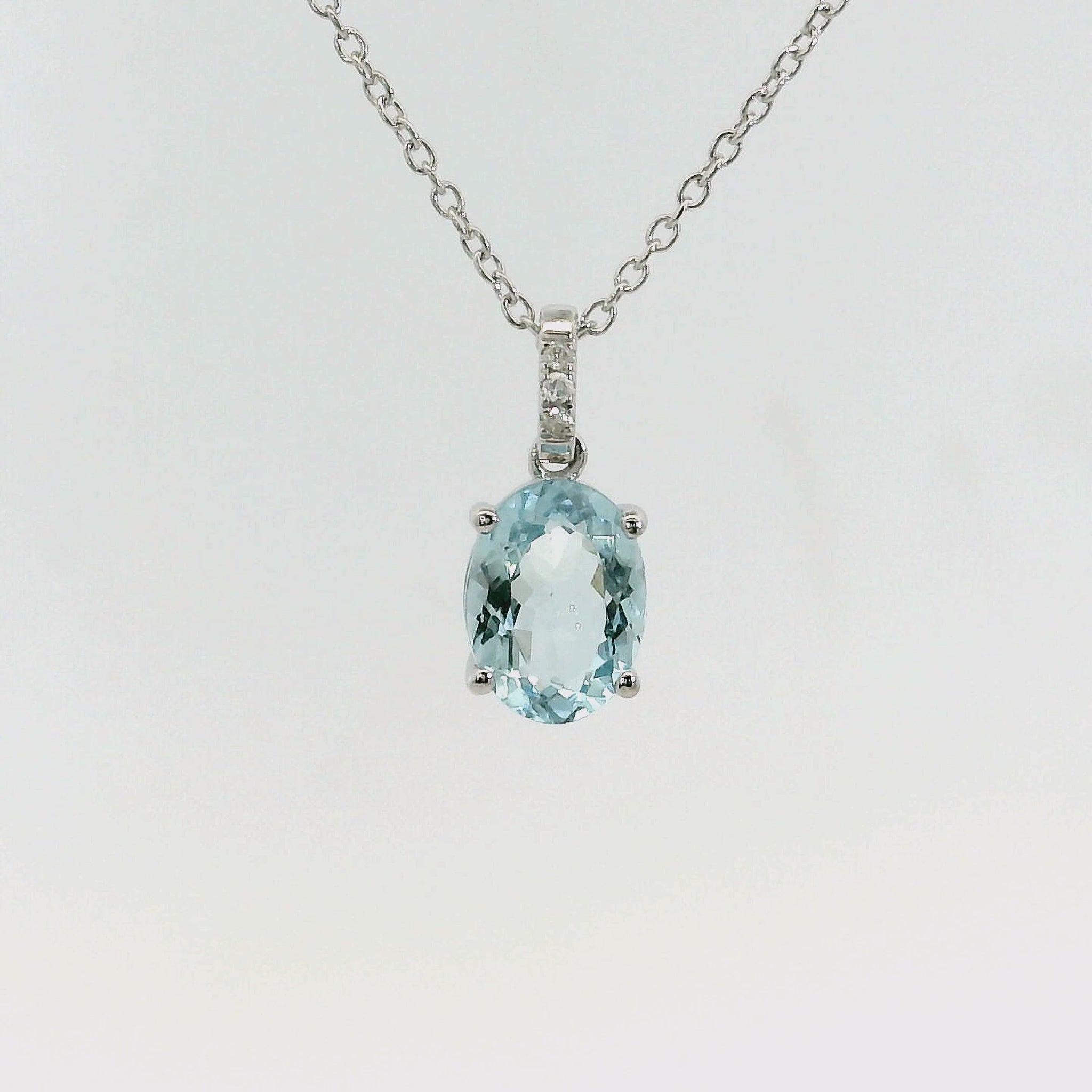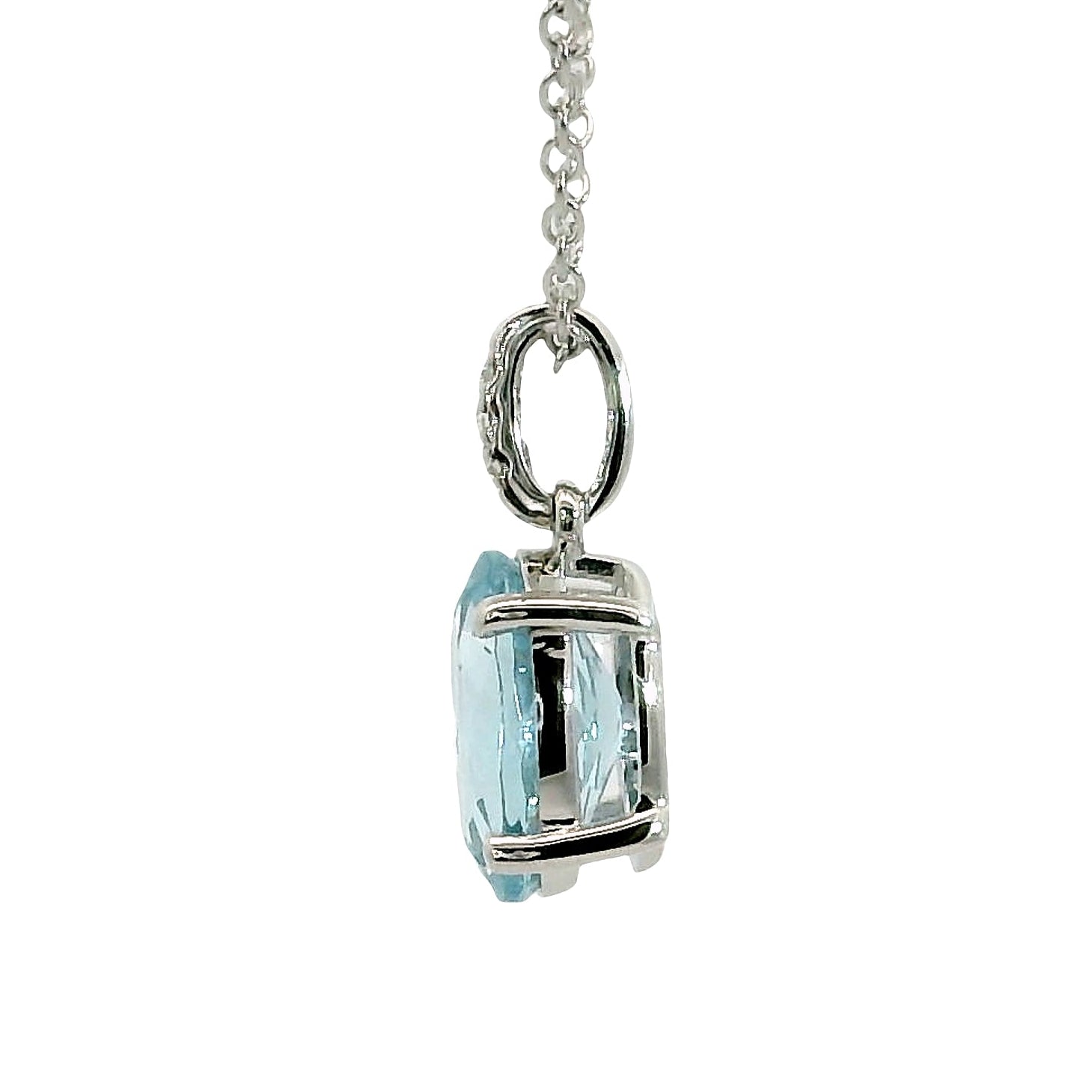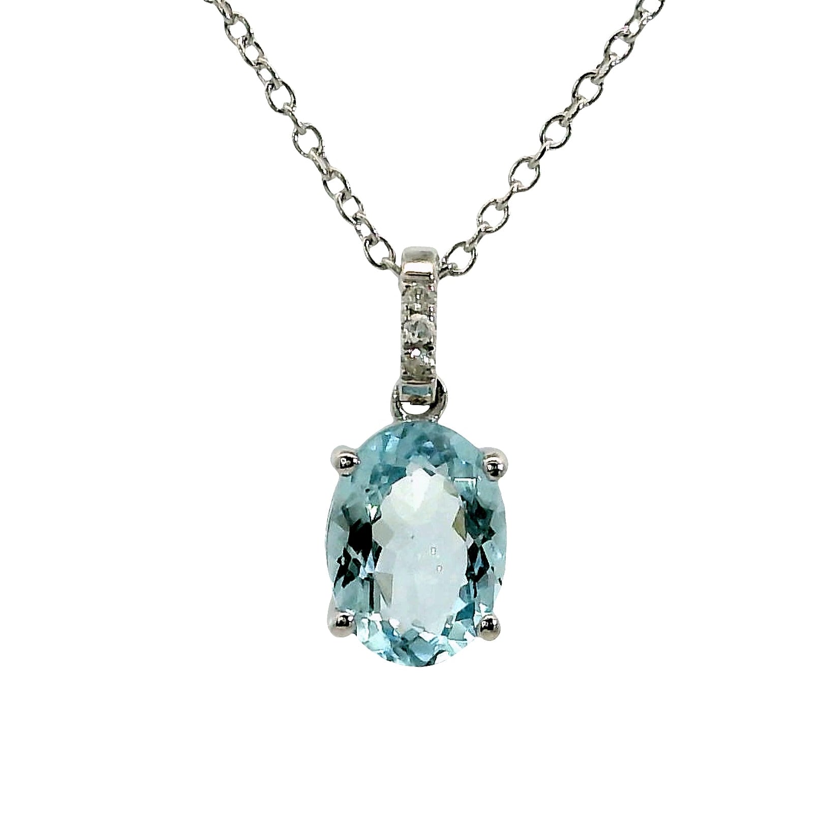 Colgante Aguamarina y Diamantes - Oro Blanco 14kt