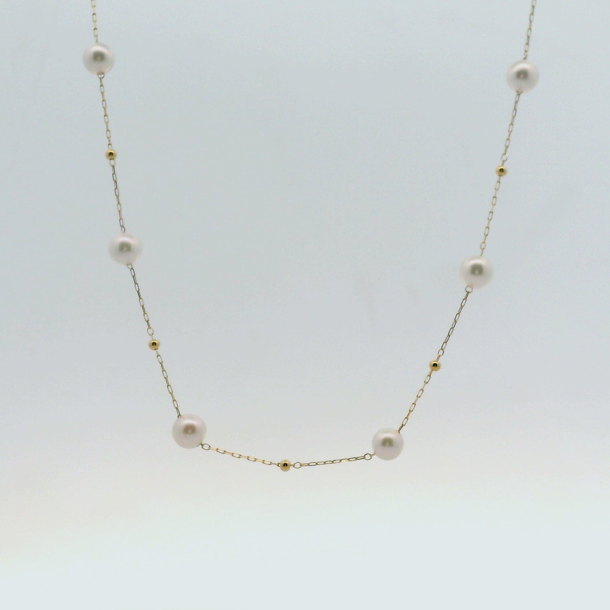 Collar con 9 perlas Akoya, separadas de bolitas de oro amarillo 18kt.