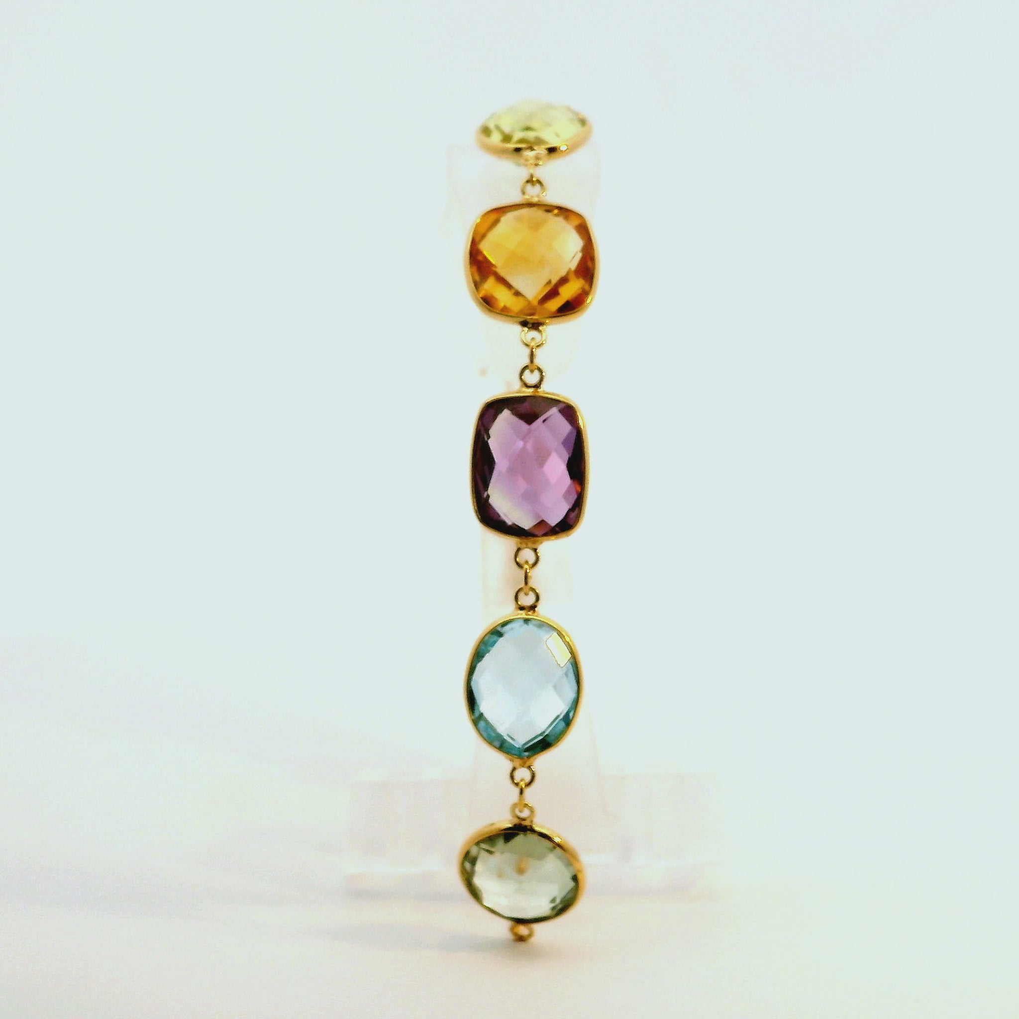 Pulsera con 2 citrinos, 1 turmalina, y 2 zafiros, en oro amarillo 18kt.